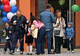 День знаний (1 сентября) в Опалиховской гимназии. Жанровая фотография. Первоклассники с родителями…