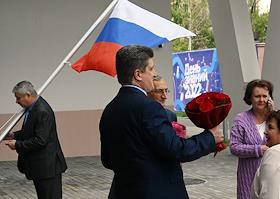 Торжественные мероприятия, посвященные Дню Знаний в школе. Слева направо: ректор МГУ имени…