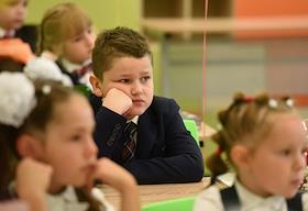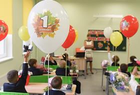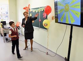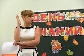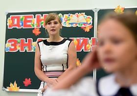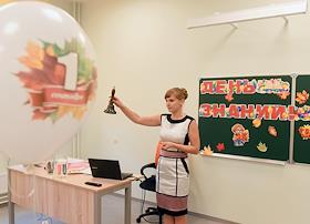 День знаний (1 сентября) в общеобразовательной школе № 632. Учительница во время занятий в классе.