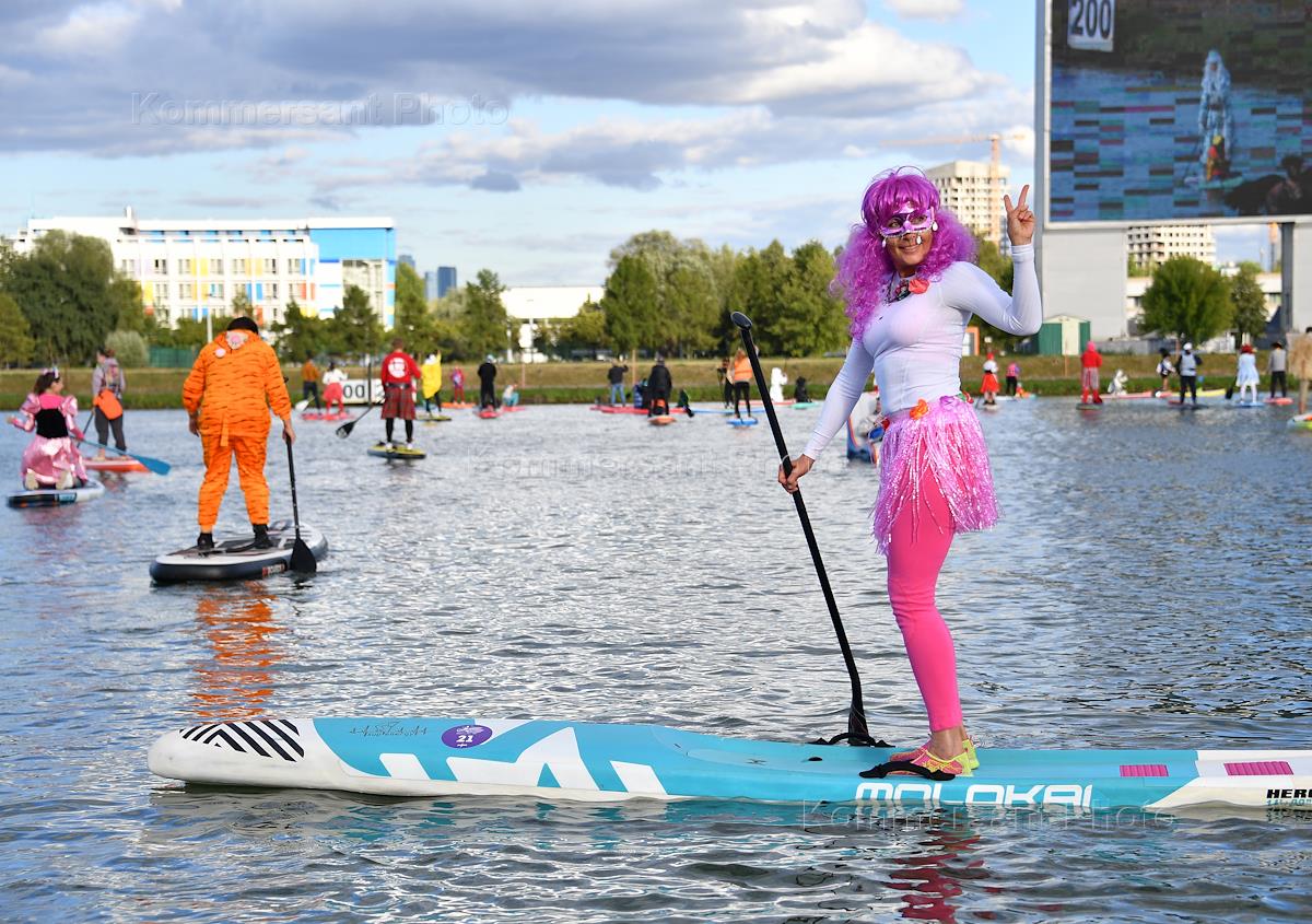 Фестиваль водных видов спорта "Открытая вода" на Гребном канале "Москва" в Крылатском. Участники во…