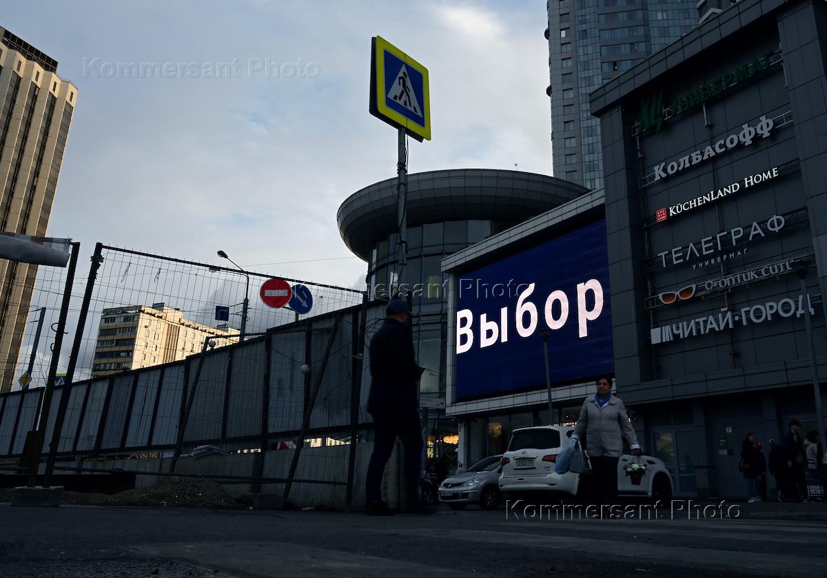 Виды Москвы. Жанровая фотография. Световые экраны с предвыборной агитацией Единого дня голосования…