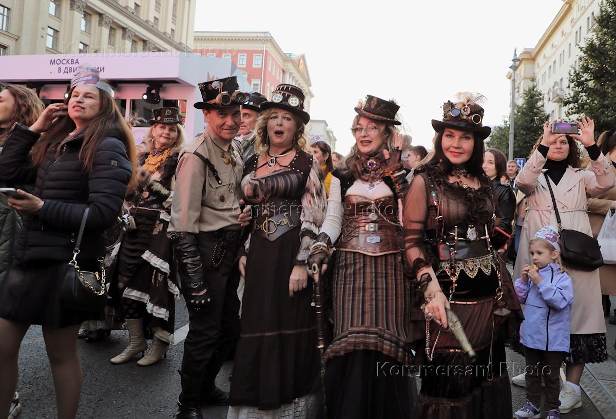 День города в Москве. Праздничные мероприятия, посвященные 875-й годовщине основания города Москвы на Тверской улице и в ВДНХ.