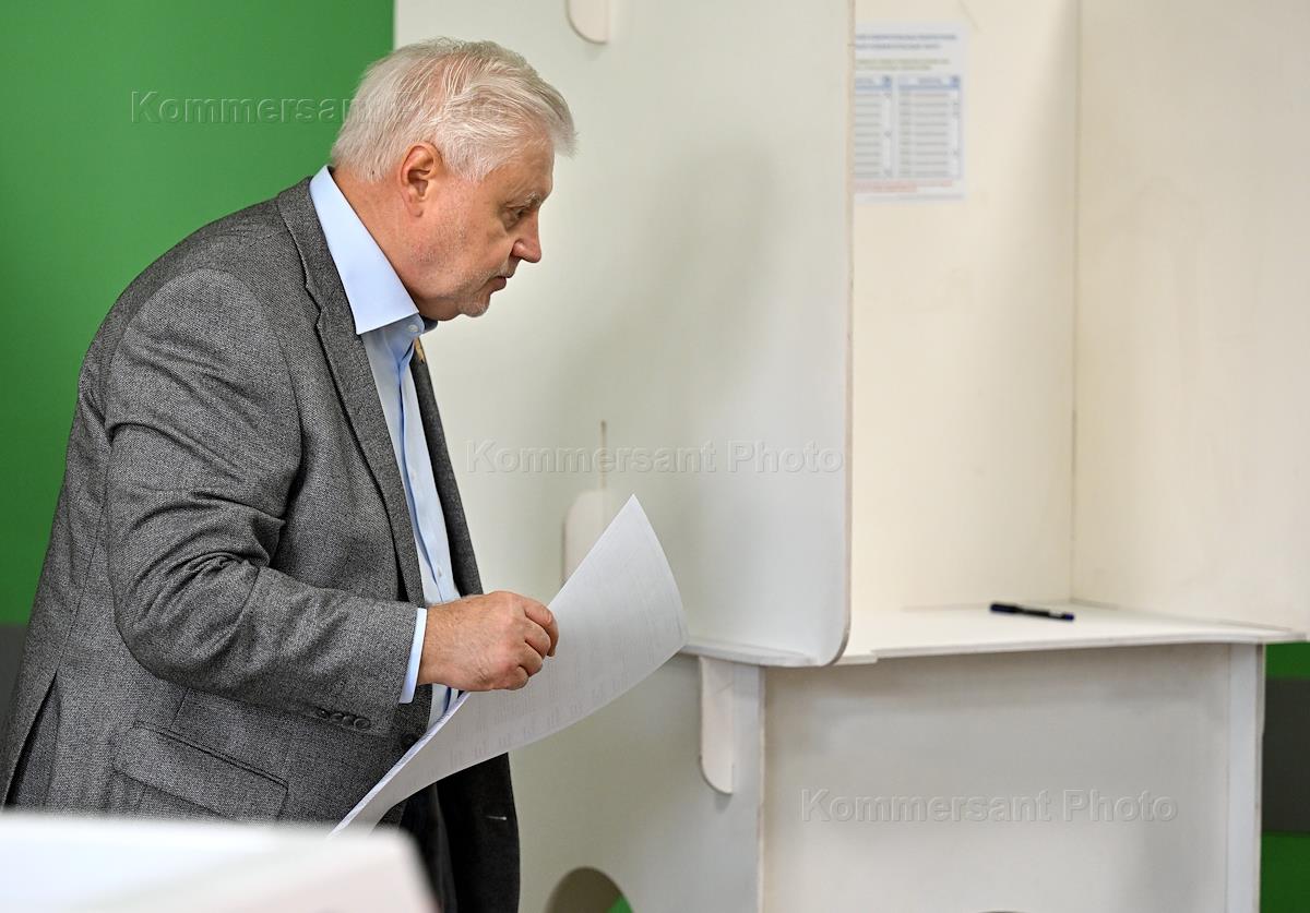 Политика Единый день голосования. Председатель партии "Справедливая Россия – За Правду", руководитель партийной фракции в Государственной Думе России Сергей Миронов проголосовал на муниципальных выборах в Москве на избирательном участке № 73.