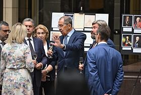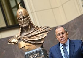 Политика Министр иностранных дел России Сергей Лавров на церемонии открытия памятника Александру Невскому в атриуме 1-го корпуса Министерства иностранных дел России. Церемония приурочена к 220-летию МИД и Дню памяти благоверного князя, который отмечает Русская православная церковь.