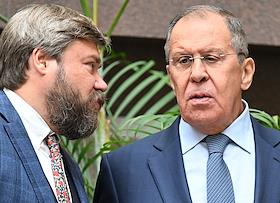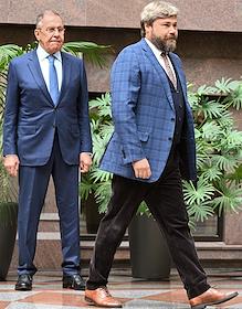 Министр иностранных дел России Сергей Лавров (слева) и председатель совета директоров группы…