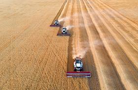 Сбор урожая пшеницы в Оренбургской области.