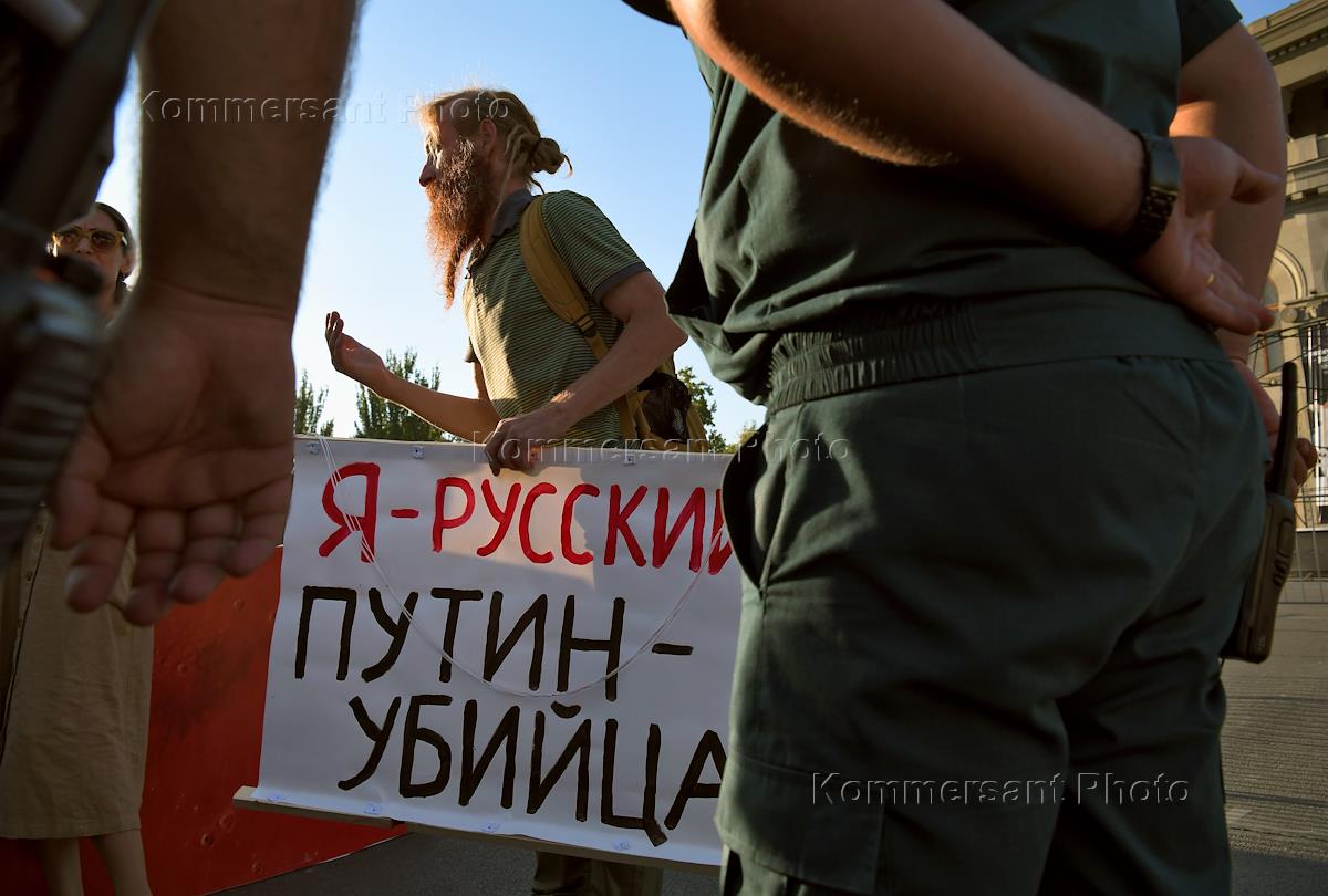 Митинг противников спецоперации прошел на площади Свободы. Участники во время митинга.