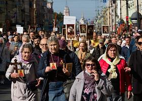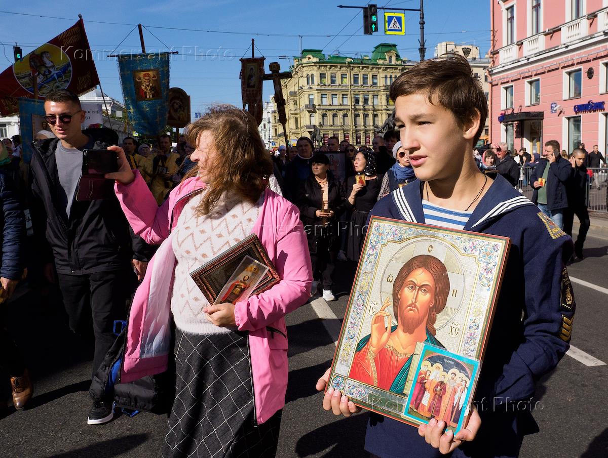 Крестный ход в честь дня перенесения мощей святого князя Александра Невского в Санкт-Петербурге.