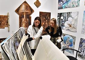 Ярмарка молодого современного искусства Blazar в Музее Москвы. Посетители на ярмарке.
