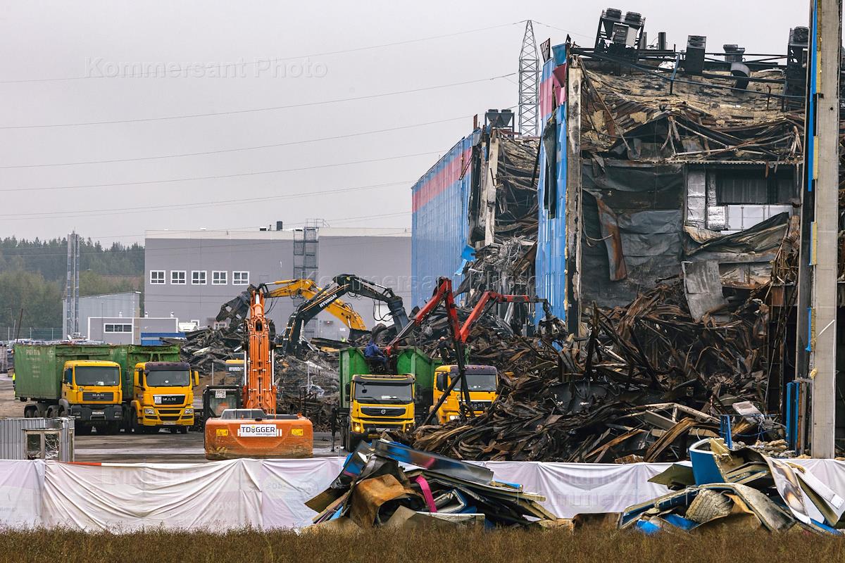 Последствия пожара на складе Ozon в cеле Петровское Истринского района Московской области.