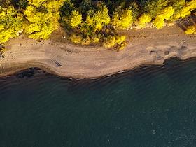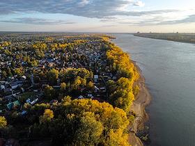 Жанровые фотографии. Осенние виды Новосибирской области с высоты. Берег реки Обь.
