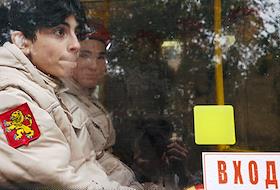 Жанровая фотография. Участники Юнармии в салоне автобуса перед церемонией перезахоронения останков…