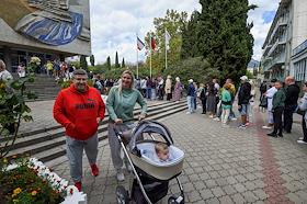 Проведение референдумов о вхождении в состав России Донецкой народной республики (ДНР), Луганской народной республики (ЛНР) и освобожденных территорий. Избиратели во время голосования на избирательном участке.