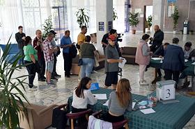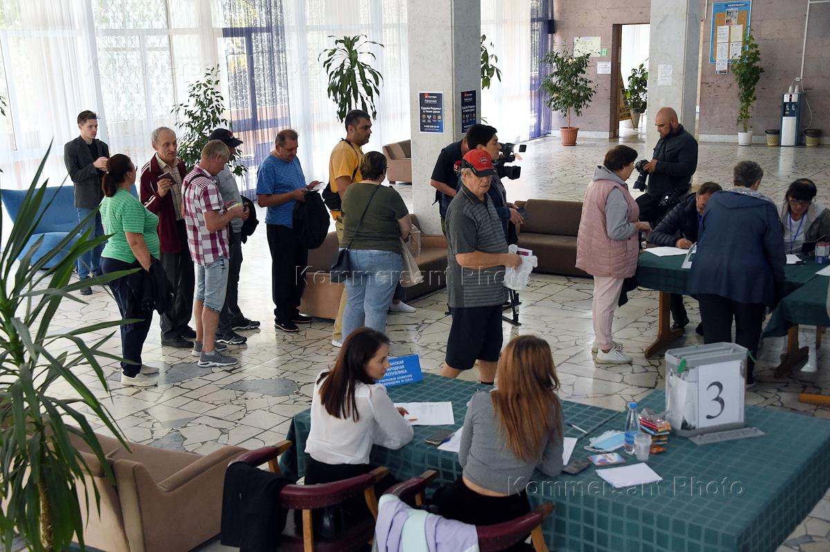 Политика Проведение референдумов о вхождении в состав России Донецкой народной республики (ДНР), Луганской народной республики (ЛНР) и освобожденных территорий. Избиратели во время голосования на избирательном участке.