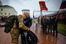 Армия и ВПК Проведение частичной военной мобилизации, объявленной президентом России Владимиром Путиным 21 сентября 2022 года. Проводы жителей Томска, призванных на военную службу по мобилизации.