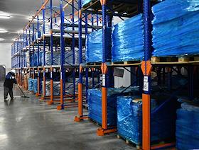 Работа завода-робота по производству сырокопченых колбас "Черкизово-Кашира". Рабочий на складе.