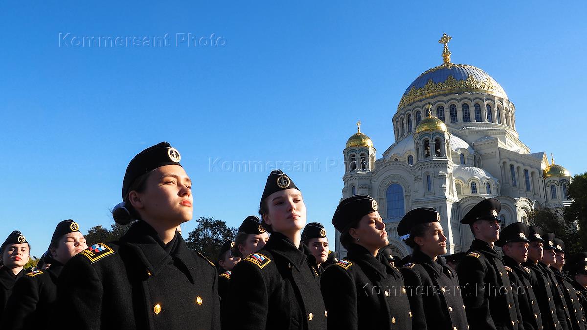 Армия и ВПК Торжественнная церемония посвящения в курсанты первокурсников Государственного университета морского и речного флота имени адмирала Макарова. Молебен в Никольском Морском соборе Кронштадта.