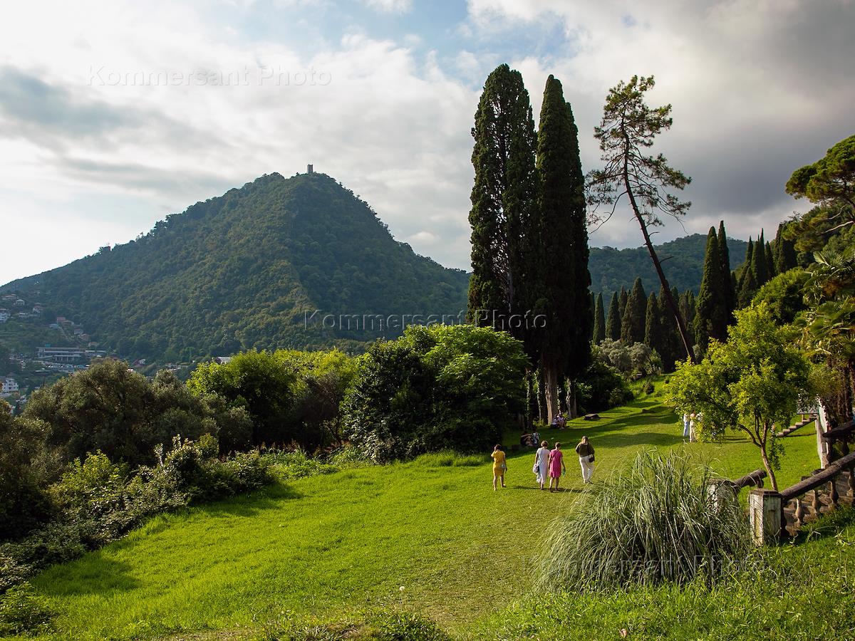 Виды Абхазии. Жанровая фотография. Туристы у Гагрской колоннады.