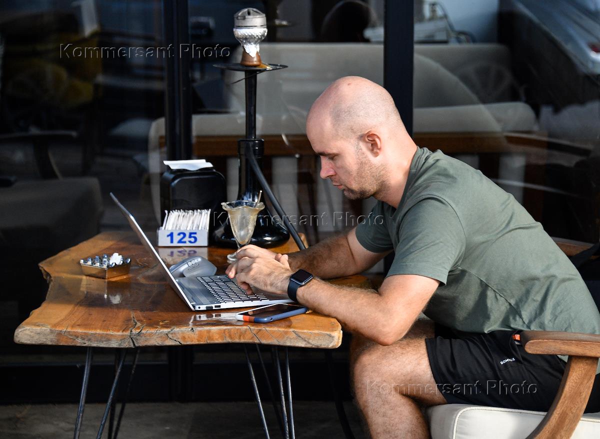 Виды Анталии. Жанровая фотография. Мужчина в уличном кафе с ноутбуком.