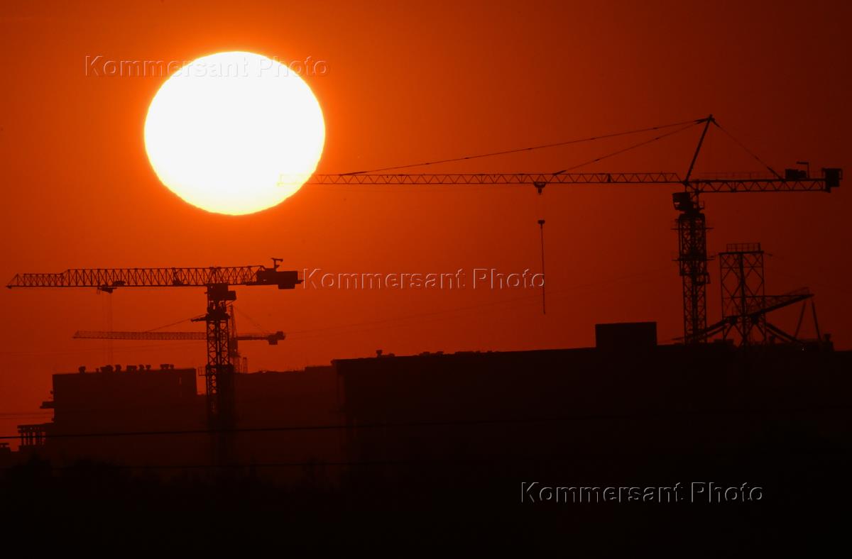 Закат и стройка. Жанровая фотография.