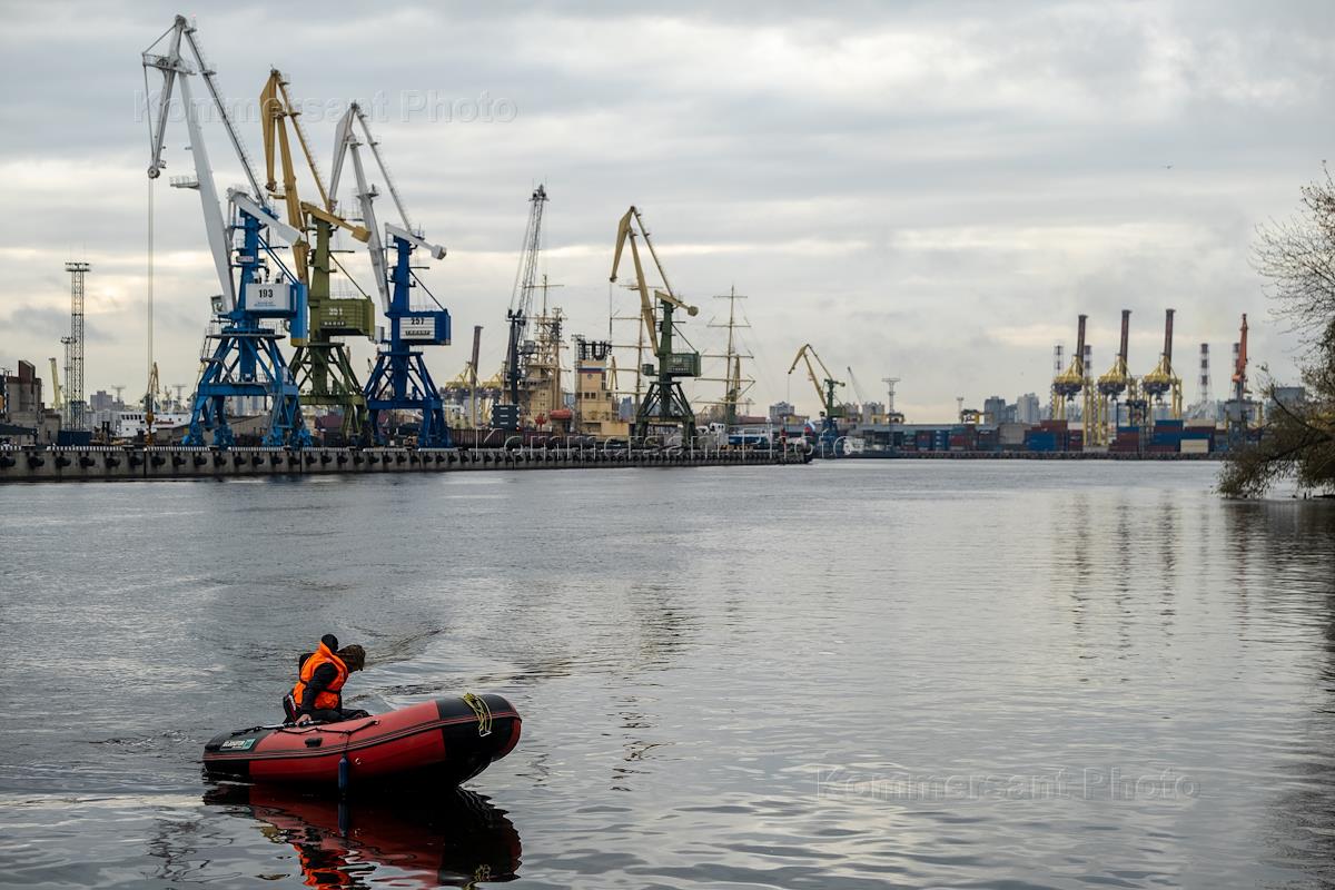 Виды Санкт-Петербурга. Жанровая фотография. Мужчина в надувной лодке на канале в акватории Большого…