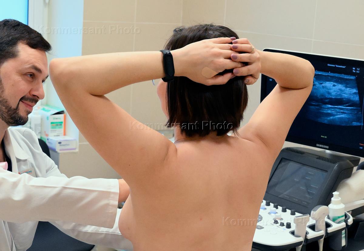День открытых дверей в рамках месяца борьбы против рака груди в клинике "Семейная". Пациентка во…