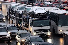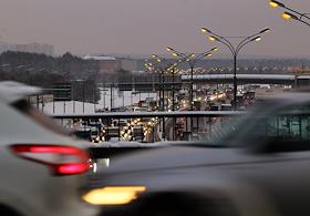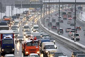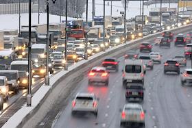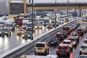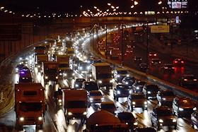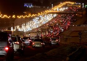 Виды Москвы во время снегопада. Жанровая фотография. Автомобильная пробка на Московской кольцевой…