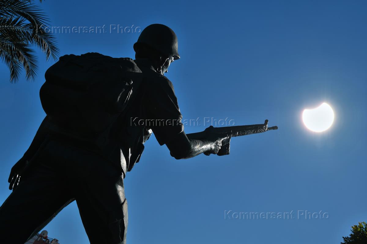 Жанровая фотография. Солнечное затмение. Фрагмент памятника солдату Али Риза Алтыну.