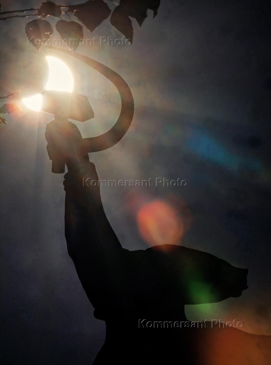 Жанровая фотография. Солнечное затмение. Памятник "Рабочий и колхозница" на ВДНХ.
