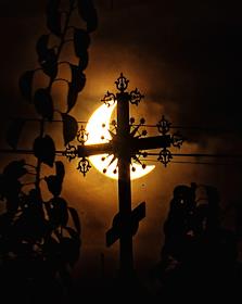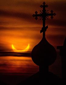 Жанровая фотография. Солнечное затмение. Крест на куполе православного храма.