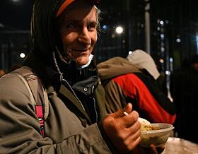 Работа волонтеров по раздаче одежды и горячей еды при храме Флора и Лавра на Зацепе.