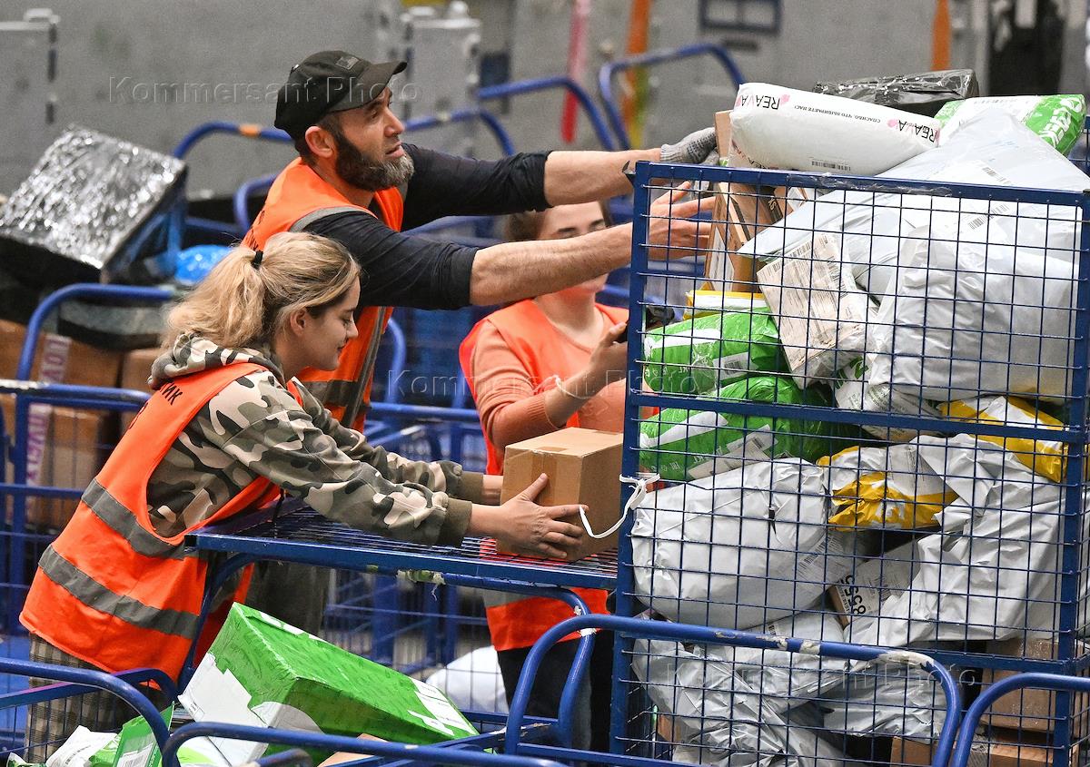 Работа склада Российского оператора экспресс-доставки документов и грузов CDEK. Рабочие во время…