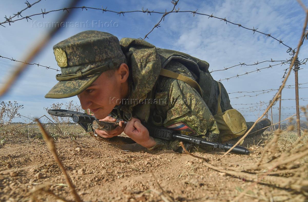 Армия и ВПК Военнослужащие во время апробации специализированной полосы препятствий, разработанной специалистами психологической службы совместно с офицерами Управления боевой подготовки флота, на одном из полигонов Черноморского флота, расположенного на Крымском полуострове.