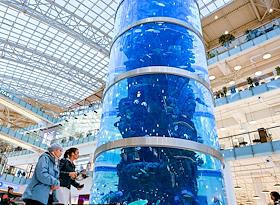 Аквариум торгового центра Авиапарк. Аквариум занесен в книгу рекордов Гиннесса как самый высокий цилиндрический аквариум в мире. Высота колбы аквариума 20,31 метр.