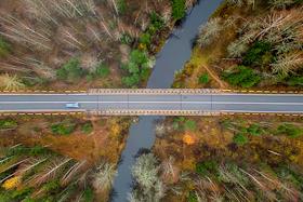 Жанровая фотография. Машина едет по мосту через реку Рощинка.