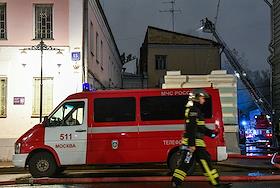 Пожар в трехэтажном здании старой постройки на улице Бахрушина.