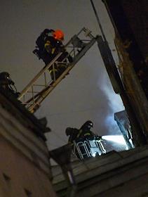 Пожар в трехэтажном здании старой постройки на улице Бахрушина. Тушение пожара.