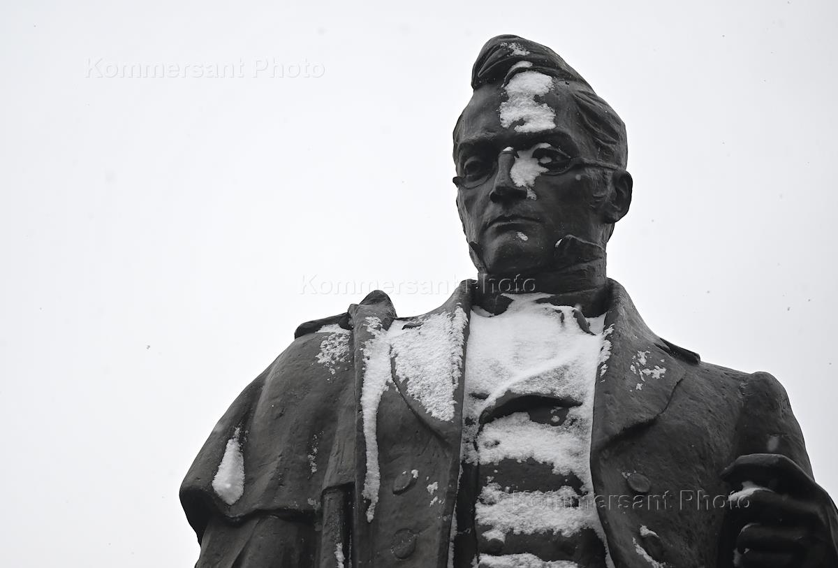 Жанровая фотография. Снегопад в Москве. Памятник писателю Александру Грибоедову на Чистопрудном…