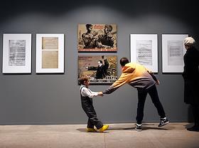 Выставка "Украина. На переломах эпох" в Центральном выставочном зале "Манеж". Посетители на выставке.