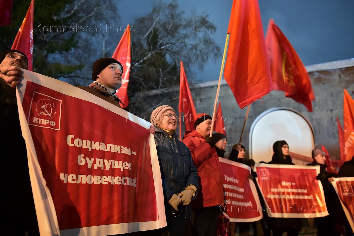 Мероприятия, посвященные 105-й годовщине Октябрьской революции, в Новосибирске. Участники акции в…