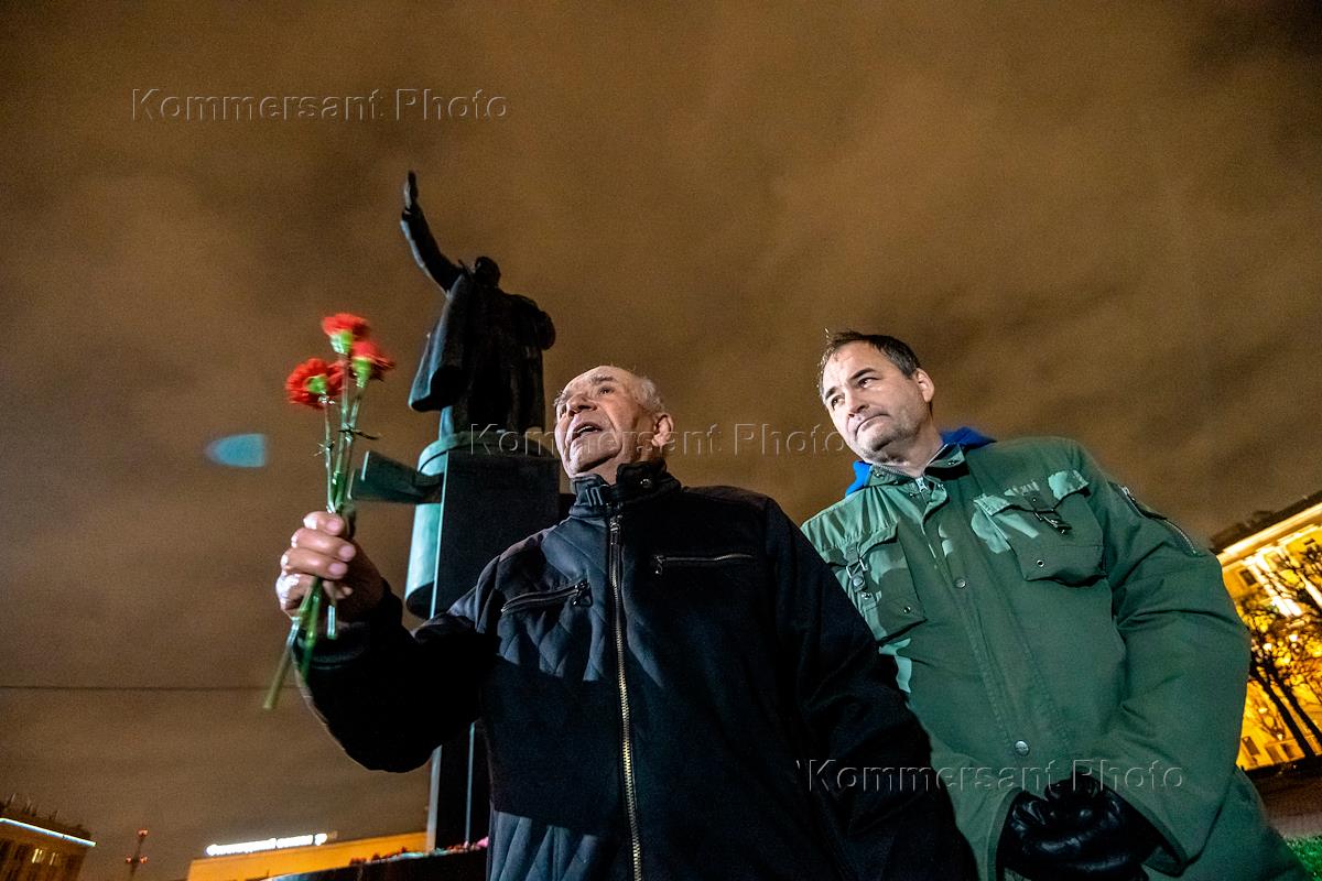 Церемония возложения цветов к памятнику Ленина на площади Ленина у Финляндского вокзала сторонниками…