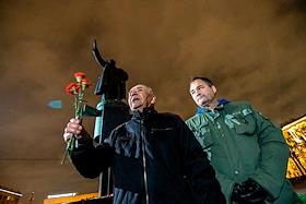 Возложение цветов к памятнику Ленина на площади Ленина у Финляндского вокзала сторонниками партии "Другая Россия"