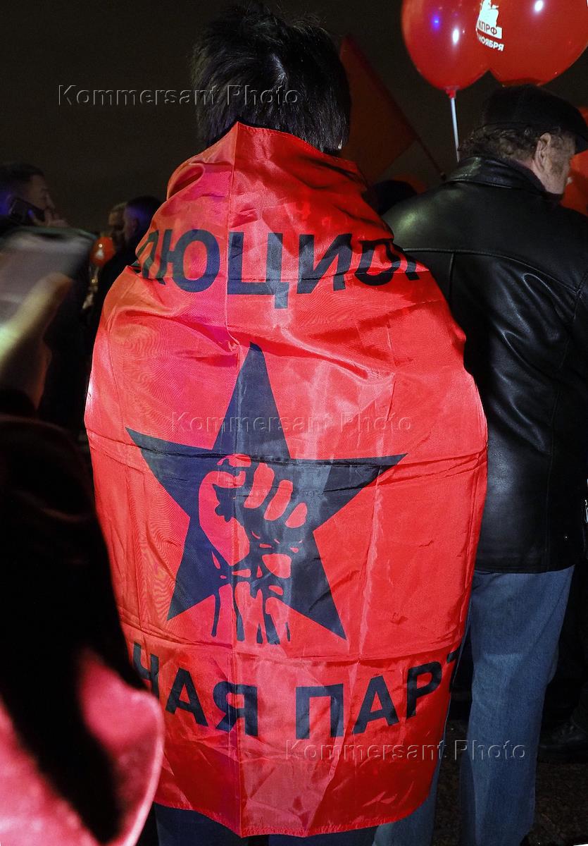 Возложение цветов к крейсеру "Аврора" сторонниками коммунистической идеологии