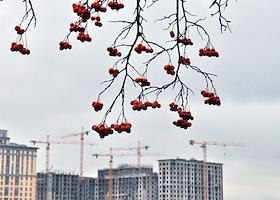 Виды Санкт-Петербурга. Жанровая фотография. Гроздья рябины на фоне кранов на строительстве…
