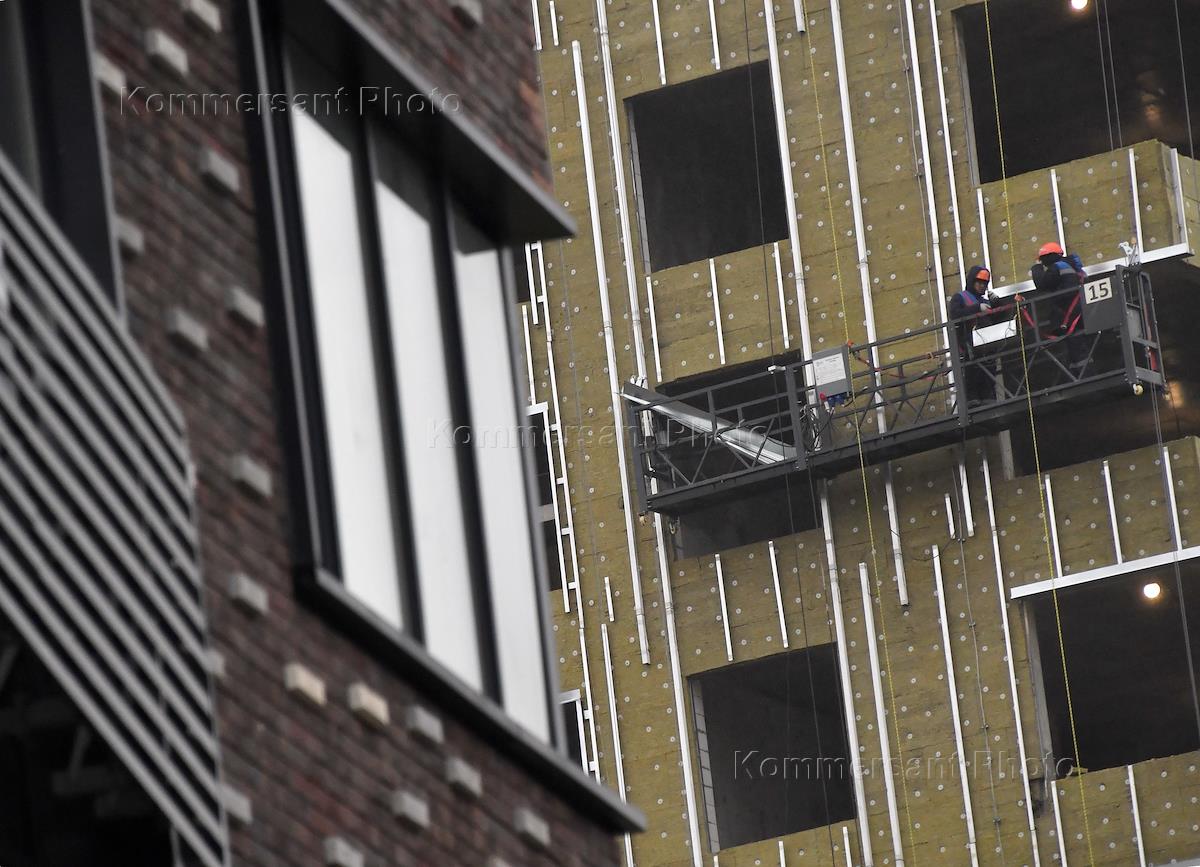 Виды Москвы. Жанровые фотографии. Новостройки. Рабочие на строительной площадки жилого комплекса.