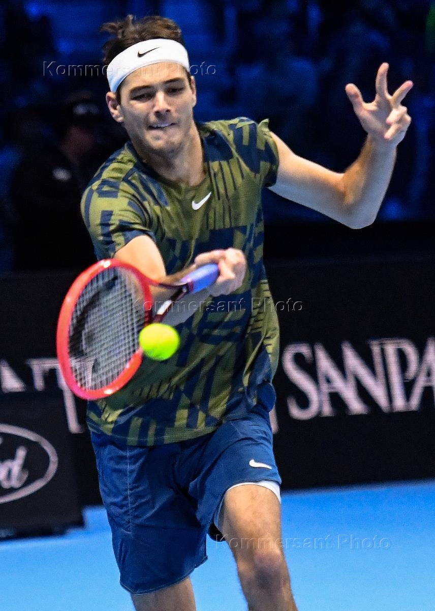 Итоговый турнир АТР (Nitto ATP Finals) 2022 в Турине. Американский теннисист Тэйлор Фритц во время…