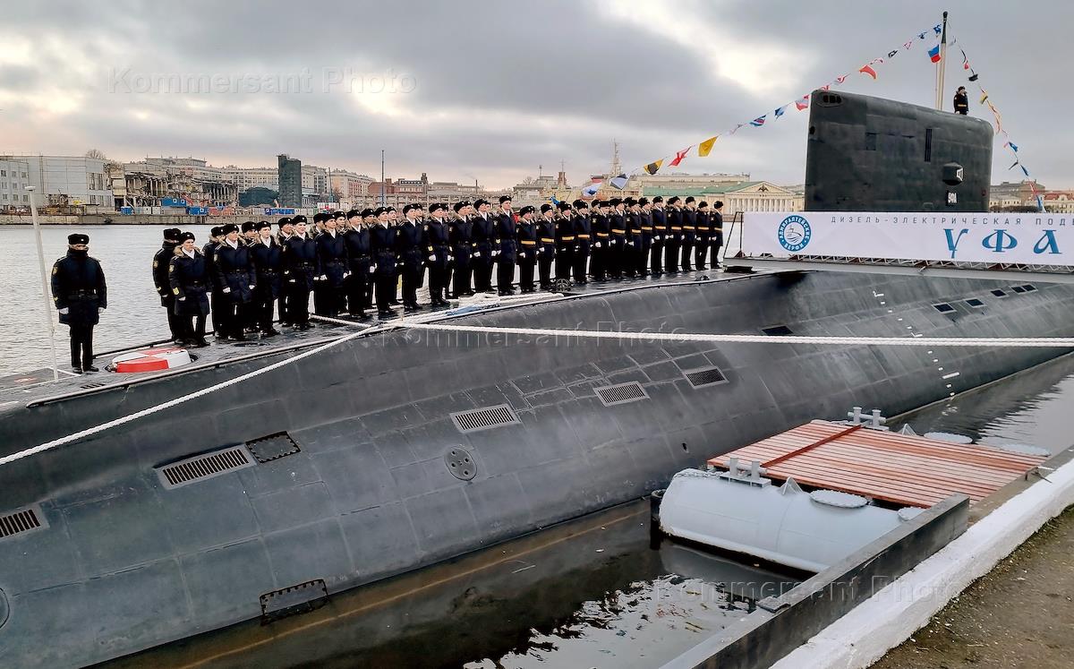 Экономика и бизнес АО "Адмиралтейские верфи", большая дизель-электрическая подводная лодка "Уфа" проект 636, после церемонии поднятия военно-морского флага РФ.