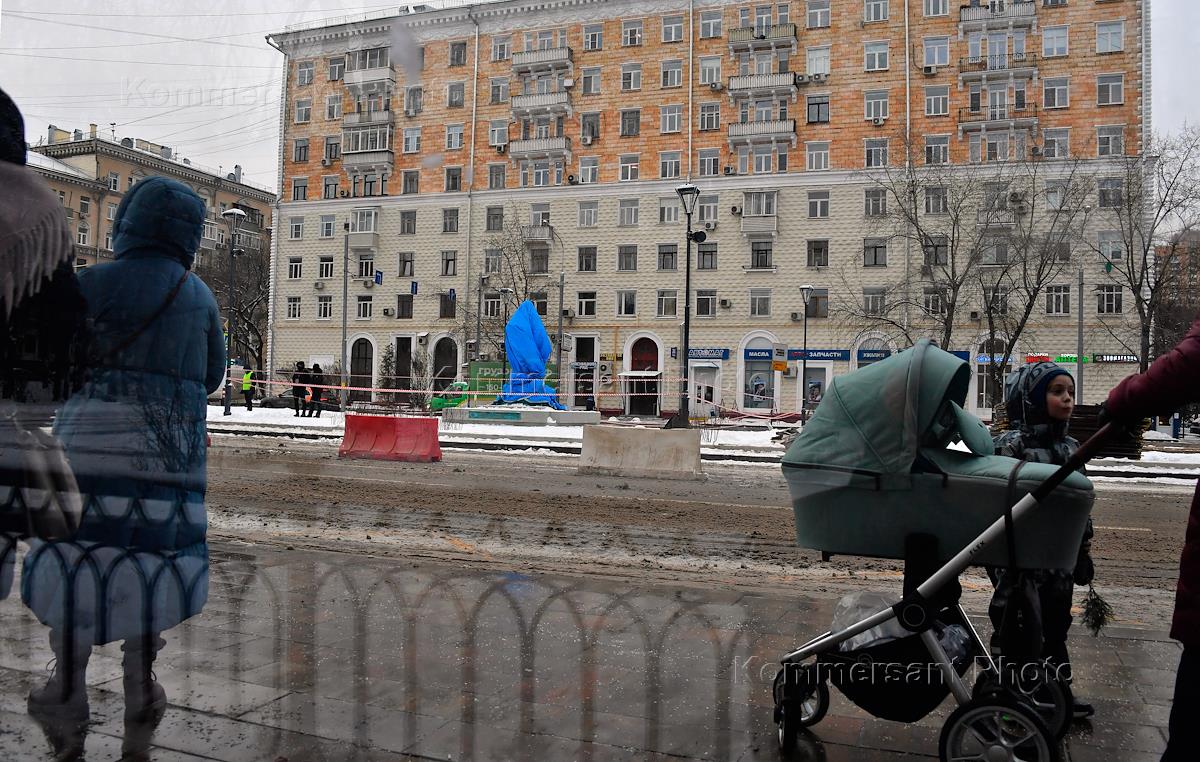 Подготовка к церемонии открытии памятника кубинскому государственному деятелю Фиделю Кастро на Новопесчаной улице. Жанровая фотография.