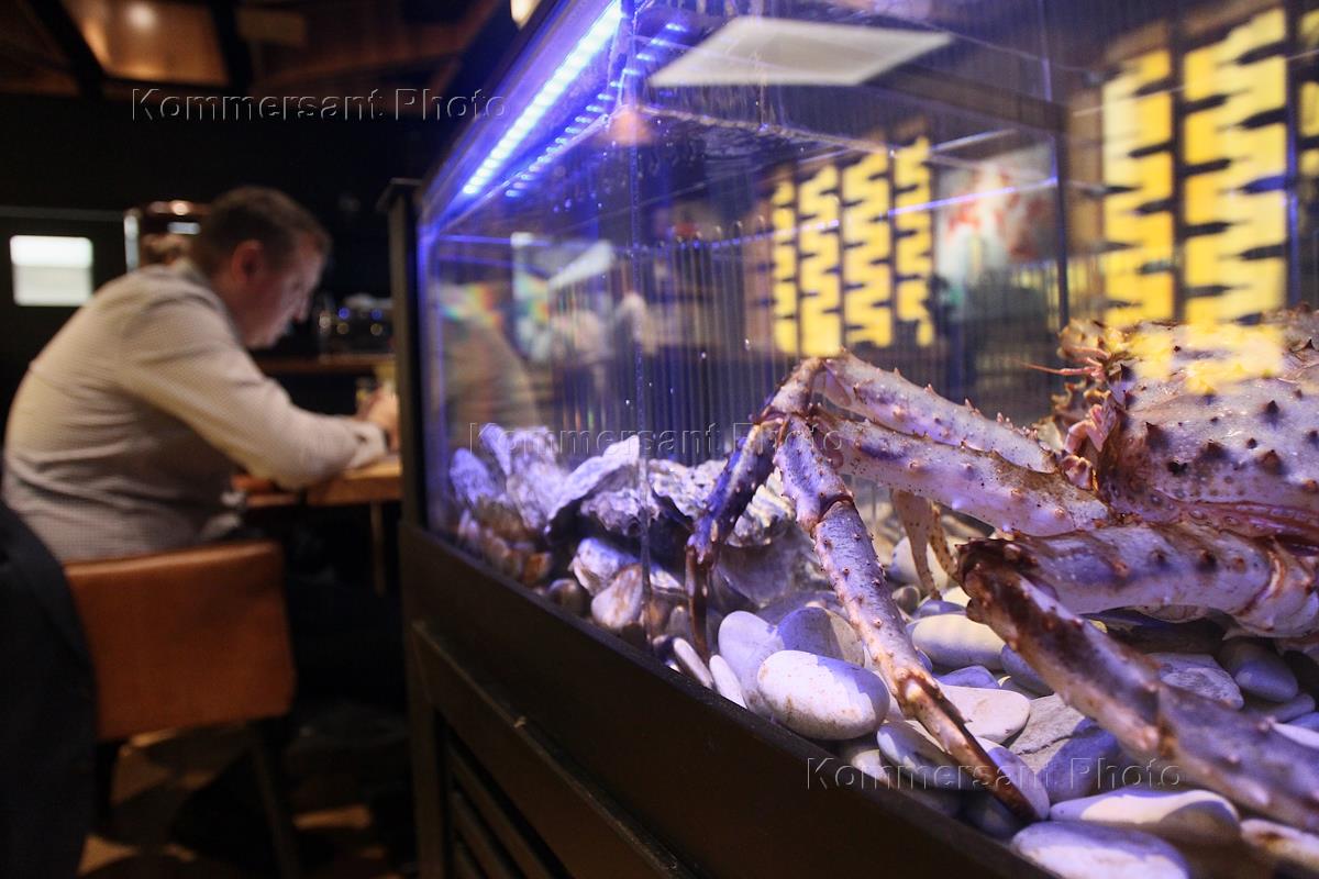Ресторан Vinedo. Жанровая фотография. Краб в аквариуме.