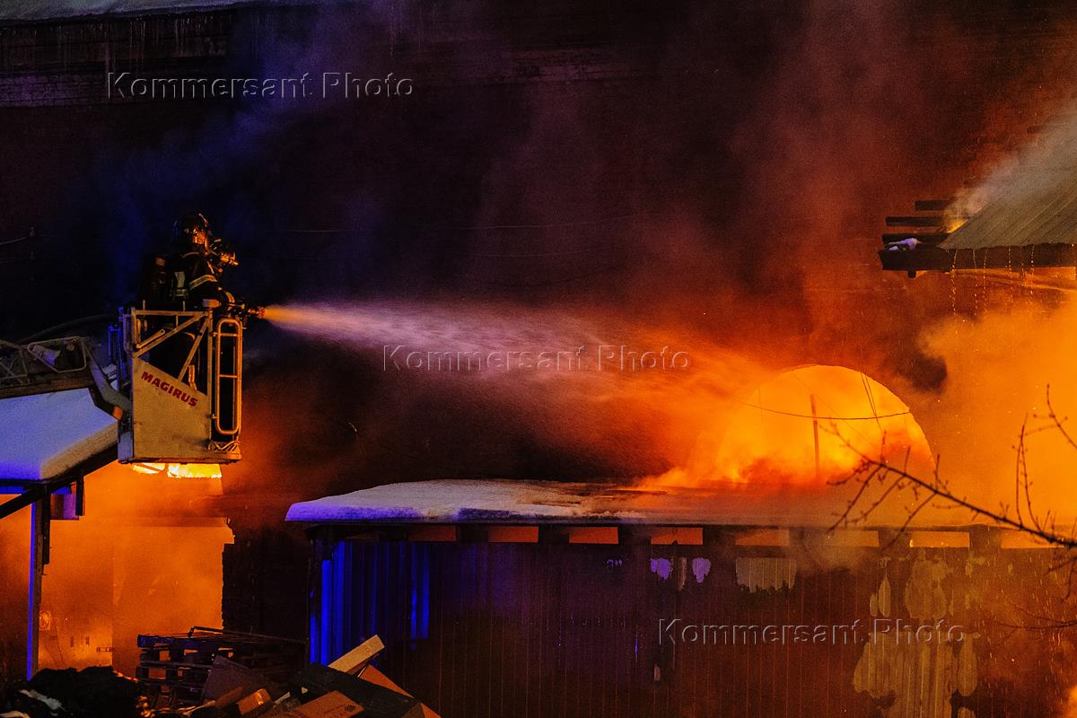 Пожар в складском здании в районе Комсомольской площади. Сотрудники пожарно-спасательной службы…